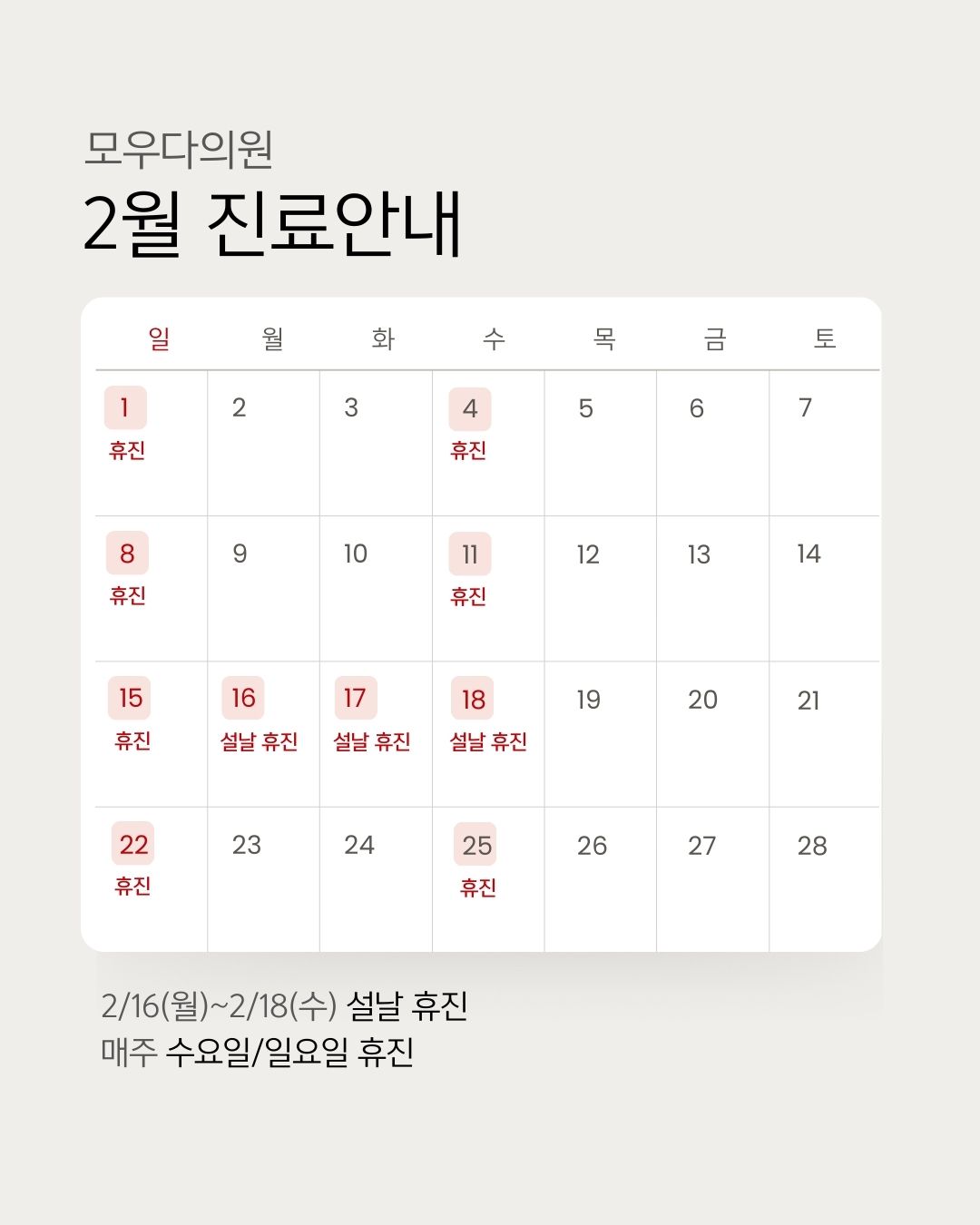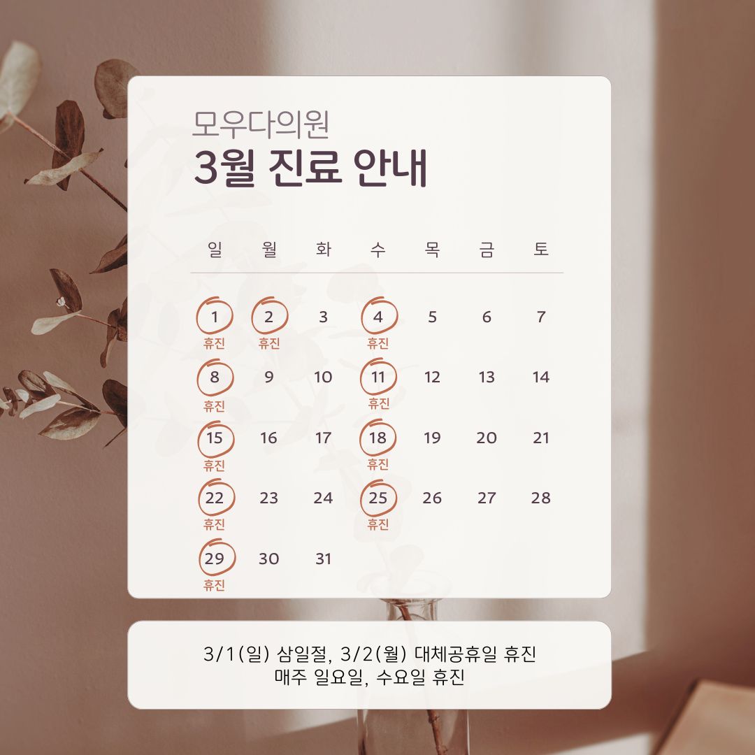 ※ 매주 수요일, 일요일, 공휴일은 휴진합니다.
